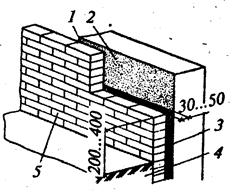 Изоляцию из полимерных листов применяют для защиты конструкций от агрессивной внешней среды. Листы сваривают горячим воздухом или токами высокой частоты, к изолируемой поверхности листы прикрепляют на специальных клеях, применяют болты и другие крепежные элементы, предусмотренные в проекте (рис. 19.10). Монолитные и сборные железобетонные конструкции изолируют листовым профилированным полиэтиленом с анкерным креплением (рис. 19.12). При помощи анкеров обеспечивается механическое крепление листов к бетону. Анкеры заделываются в бетонируемую конструкцию или в швы из цементно-песчаного раствора между сборными элементами. В необходимых местах сверху нанесенное покрытие перекрывают полосами из листового полипропилена, которые приваривают к основной изоляции. Плиты из железобетона, армоцемента и стеклоцемента используют в качестве гидроизоляции при изготовлении конструкций и сооружений из монолитного железобетона, одновременно эти плиты выполняют роль несъемной опалубки. К основным конструкциям сооружения плиты гидроизоляции крепят специальными арматурными выпусками или штырями, закладываемыми в плиты при их изготовлении. Сборная гидроизоляция отличается из всех видов изоляции наиболее высокой стоимостью и трудоемкостью устройства, но в некоторых случаях это единственно возможный вид гидроизоляции. 7.Специфика гидроизоляционных работ в зимних условиях Технологические требования по производству работ в зимнее время обусловлены в основном физико-механическими свойствами материалов: • производство работ на открытом воздухе без проведения специальных мероприятий разрешается только при температуре воздуха не ниже 5°С, за исключением работ по устройству металлической изоляции; • рабочие места должны быть защищены от атмосферных осадков и ветра; • поверхности изолируемых конструкций должны быть очищены от грязи, воды, снега, наледи и продуты сжатым воздухом; • подогрев изолируемых поверхностей необходимо проводить до набора ими положительной температуры; • используемые изоляционные составы должны иметь температуру в соответствии с требованиями технологической карты; • засыпка гидроизоляционных покрытий разрешается талым грунтом или сухим песком с тщательным послойным уплотнением, в грунте не должно быть мерзлых комьев; • в зданиях и помещениях, где проводятся изоляционные работы, необходимо поддерживать температуру в пределах 10... 15 °С. Изолируемая поверхность должна быть высушена и прогрета до температуры не ниже 10...15 °С. Выравнивающие стяжки выполняют только из горячего асфальтобетона. Рулонные материалы перед наклейкой необходимо не менее 20 ч выдерживать в помещении при температуре 15...20 °С. Горячие асфальтовые мастики в процессе нанесения должны иметь температуру 160... 180 °С, холодные — 60...80 °С. К месту производства работ материалы необходимо доставлять в утепленных контейнерах или емкостях. Рекомендуется гидроизоляционные работы при температуре ниже +5°С проводить в тепляках. Гидроизоляцию при температуре воздуха ниже 5°С устраивают обязательно с предварительным отогревом изолируемой поверхности, гидроизоляционные материалы должны иметь положительную температуру, транспортирование и хранение их только в утепленной таре, холодные мастики, пасты и растворы должны приготовляться с примене