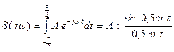 Ширина спектра сигнала равна, в данном случае, Пэ =2p/t. Спектр непериодического сигнала (спектральная плотность), как уже сказано выше, может быть получен с помощью интеграла Фурье. Для одиночного прямоугольного импульса с амплитудой А и длительностью t на рис.2.3 получим спектр S(jw) на рис.2.4: