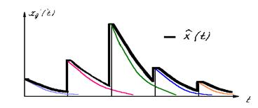 Вторая причина возникновения погрешностей - неидеальность восстанавливающего ФНЧ. Т.о. погрешность дискретизации и восстановления непрерывного сигнала определяется следующими причинами: 1) Спектры реальных сигналов не финитны. 2) АЧХ реальных ФНЧ неидеальны. Например, если в качестве ФНЧ использовать RC- фильтр, то восстановленный сигнал на его выходе будет иметь вид: