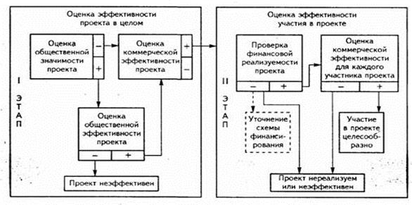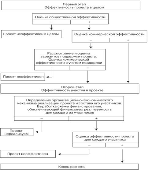 ВТОРОЙ ВАРИАНТ Оценка эффективности инвестиционных проектов проводится в два этапа. На первом этапе рассчитываются показатели эффективности проекта в целом. Цель этого этапа – агрегированная экономическая оценка проектных решений и создание необходимых условий для поиска инвесторов. Для локальных проектов оценивается только их коммерческая эффективность и, если она оказывается приемлемой, то можно переходить ко второму этапу оценки. Если источник и условия финансирования уже известны, оценку коммерческой эффективности проекта можно не производить. Второй этап осуществляется после выработки схемы финансирования. На этом этапе уточняется состав участников и определяется финансовая реализуемость и эффективность участия в проекте каждого из них. Для локальных проектов на этом этапе определяется эффективность участия в проекте отдельных предприятий-участников, эффективность инвестирования в акции таких акционерных предприятий.
