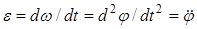Угловое ускорение характеризует быстроту изменения угловой скорости, т.е.