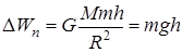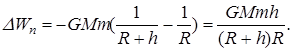 Изменение потенциальной энергии тела массы m, поднятого с поверхности Земли (r = R, где R – радиус Земли)на высоту h (r = R + h), согласно (16), равно: