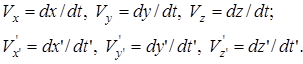 В случае движения частицы параллельно осям ОХ и O'X’ в направлении скорости