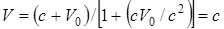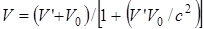 Эта формула выражает закон сложения скоростей в релятивистской механике. При Или пусть