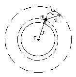 Определяем работу совершённую силами поля тяготения. Предпологаем что некоторое тело массой m находится на орбите r отсчитываемой от центра земли переходит на иную орбиту совершая перемещение dL. Тогда элементарная работа dA затрачиваемая по переводу с одной орбиты на другую может быть определена: