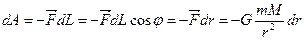 dA=-FdL=-FdL*cosj j - угол между направлением вектора силы и перемещением dL. Знак минус говорит, что работа совершается против гравитационной силы. Учитывая что dL*cosj=dr