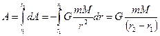 Полная работа выполненная против сил тяготения по переводу тела с одной орбиты r1 на другую с радиусом r2 необходимо просумировать все элементарные работы на данном интервале. Реально сумирорование сводится к интегрированию.