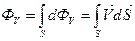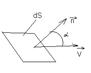 Через которую протекает данная жидкость со скоростью V и вычислим объём протекающий в единицу времени через данную площадку. Данный объём получил название элементарного потока вектора V через элементарную площадку dS. Данный элементарный поток может быть определён как