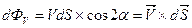 Α – угол между нормалью к данной элементарной площадке и вектором V. Для того что бы вычислить поток через поверхность площадью S необходимо сложить все элементарные потоки через данную поверхность. Реально суммирование сведётся к интегрированию по поверхности S.