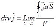 где V находится внутри поверхности S. Поток вектора j через замкнутую поверхность S равен объемному интегралу от дивигенции вектора j по объёму V находящейся внутри данной поверхности объёмом S. div – оператор векторного анализа который применяется к векторной функции и в результате его действия на векторную функцию получается скалярная функция.