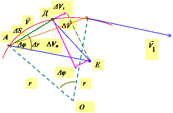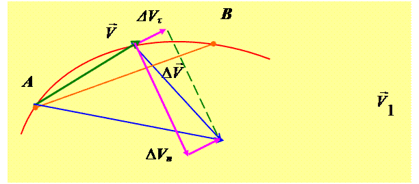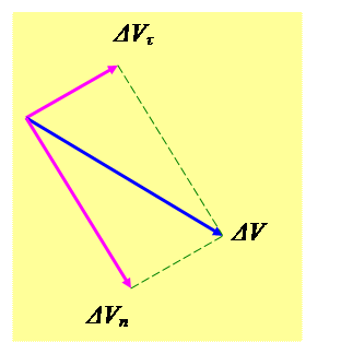 Разложение вектора ∆ на две составляющие ∆Vn и ∆Vτ – нормальную и тангенциальную.