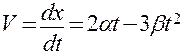 Решение. Частица движется вдоль оси х по закону x = αt2 – βt3, где α и β –положительные постоянные