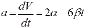 αt2 – βt3 = 0 → . В этот момент времени