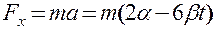 Частица движется вдоль оси х по закону x = αt2 – βt3, где α и β –положительные постоянные. В момент t = 0 сила, действующая на частицу, равна F0. Найти значения силы Fx в точках поворота и в момент, когда частица опять окажется в точке х = 0.