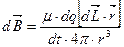 Таким образом получим выражение которое определяет индукцию МП положительного заряда dq движущегося со скоростью V относительно некоторой инерциальной системы отсчёта. В том случае если заряд будет точечным то индукция