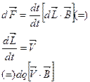 Предполагаем что некоторый заряд dq находится в элементарном объёме dV: данный объём движется со скоростью V. Движение данного заряженного объёма можно уподобить протеканию электрического тока имеющего силу тока I1, причём