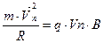 Запись второго закона Ньютона для заряда q массой m в проекции на ось совпадающую с радиусом окружности.