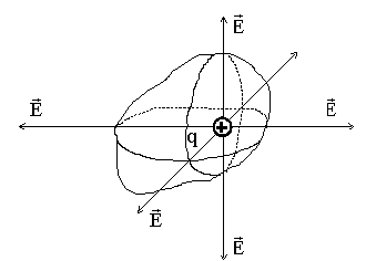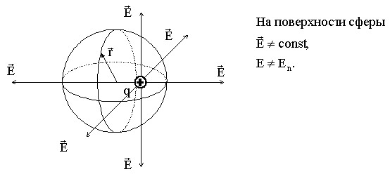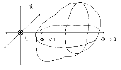 9.4.2.3. Поток вектора поля точечного заряда через "измятую" сферу - произвольную поверхность Число проходящих через "измятую" сферу силовых линий не изменилось, т.е.