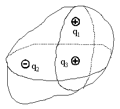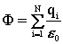 Для произвольного числа зарядов N: - алгебраическая сумма зарядов, находящихся внутри замкнутой поверхности, делённая на ε0.