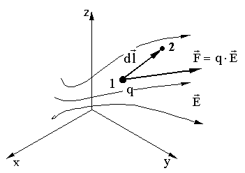 Заряд q перемещается в электрическом поле на из точки 1 в точку 2. Выразим работу по перемещению заряда двумя способами: