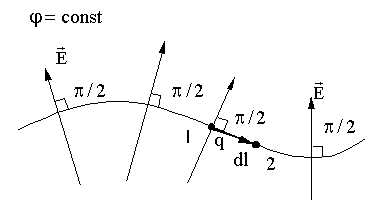 9.8. Эквипотенциальная поверхность (лат. aequus - равный) - поверхность, все точки которой имеют одинаковый потенциал, т.е.