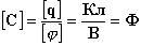 Единица емкости - фарада, Ф.