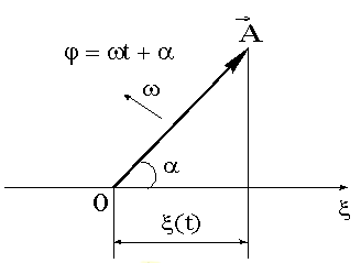 Вдоль горизонтальной оси откладывается колеблющаяся величина ξ (любой физической природы). Вектор