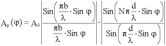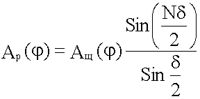 Подставив Aщ, полученную в (19.3.2.3), получим зависимость амплитуды результирующего колебания, создаваемого решеткой для угла φ: