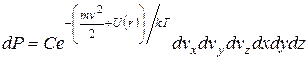 Теория теплоты. Термодинамика идеального газа Распределение Максвелла-Больцмана Выражение (2.18) описывает распределение частиц в координатном пространстве в потенциальном поле, выражение (2.19) — распределение частиц газа по скоростям. Эти распределения являются независимыми. Применяя теорему об умножении вероятностей независимых событий, можно получить вероятность того, что частица имеет одновременно заданные значения координат и скоростей: