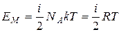 где Ei — энергия отдельной молекулы. До сих пор мы пользовались представлением о молекулах как о материальных точках. Кинетическая энергия молекул считалась совпадающей с энергией их поступательного движения, а средняя кинетическая энергия молекулы полагалась равной Ввиду полной беспорядочности движения молекул в газе все направления перемещения молекулы равновероятны. Поэтому на каждую степень свободы поступательного движения приходится в среднем энергия