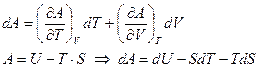 Данный термодинамический потенциал в качестве естественных переменных использует объем (V) и температуру (Т), поэтому полный дифференциал будет равен сумме частных производных по температуре и объему.