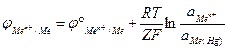 Уравнение Нернста для данного электрода: