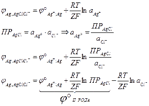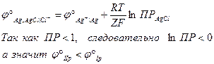 Стандартный электродный потенциал электрода II рода складывается из стандартного электродного потенциала электрода I рода и ПР труднорастворимого соединения.
