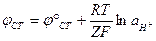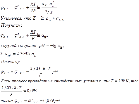 Уравнение Нернста для этого электрода: