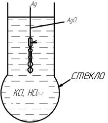 Константа равновесия зависит от температуры и природы реагирующих веществ, то есть будет определяться видом стекла. Конструктивно, стеклянный электрод представляет собой серебряную проволоку, покрытую хлоридом серебра, помещенную в стеклянную капсулу, стенки которой и представляют собой поверхность электрода.