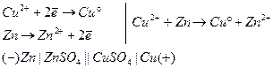 Гальванический элемент – это устройство, в котором полезная работа химической реакции превращается в работу электрического тока. Гальванический элемент, в котором работа совершается непосредственно за счет протекания в нем химических реакций, называется химическим. Гальванический элемент, в котором работа совершается за счет разности концентраций, называется концентрационным. Если оба электрода погружены в один и тот же раствор, элемент называется без переноса заряда. Если электроды погружены в разные растворы, контакт между которыми обеспечивает полупроницаемая мембрана или солевой мостик, этот элемент называется с переносом зарядов. Гальванические элементы с переносом заряда Данный тип гальванических элементов является наиболее распространенным. В нем электроды имеют строгую полярность. Электрический ток вырабатывается за счет протекания реакций окисления-восстановления. Электроды соединены солевым мостиком, а возникающая ЭДС есть разность концевых потенциалов при условии, что внешняя цепь разомкнута. Величина ЭДС подобных гальванических элементов, в первую очередь определяется разностью химических потенциалов материалов, составляющих электроды, или разностью стандартных электродных потенциалов.