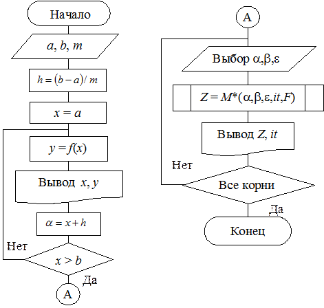 Постановка задачи Раздел 4. Решение систем нелинейных уравнений Общий алгоритм численных методов решения нелинейных уравнений Рассмотрим реализацию двух этапов их решения. 1. Программа должна сначала выдать таблицу значений y = f (x) (отделений корней). 2. Далее делается запрос на ввод начального приближения (это a, b или (a+b)/2) и точности решения e. Расчет функции и вычислительный алгоритм обычно выполняются в виде отдельных подпрограмм. Примерный алгоритм данных процедур может иметь следующий вид: