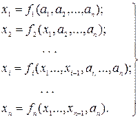 где Алгоритм решения аналогичен алгоритму Зейделя или простой итерации для решения систем линейных уравнений. Пусть известен начальный вектор решения: xi = ai, i = 1,2,…, n, тогда