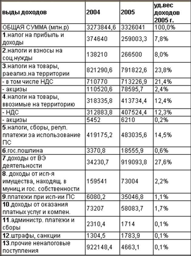Рассмотрим доходы ФБ за 2004-2005 годы:
