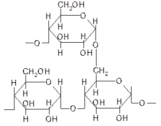Результаты эксперимента подтверждают ранее сделанный вывод о том, что молекулы амилопектина разветвлены и ветвление осуществляется через 1,6-связи следующим образом: