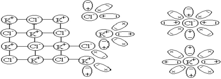 Рисунок 2 Схема растворения и диссоциации хлорида калия