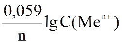 При подстановке в данное уравнение Т = 298 К, F = 96500 Кл/моль и замене ln ® lg получим следующее уравнение: φ = φ0 + Уравнение Нернста для металлического электрода имеет вид