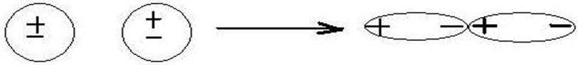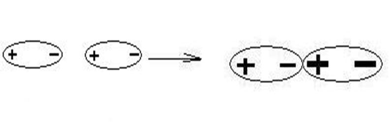 2) индукционные (диполь – индуцированный диполь или ион– индуцированный диполь)- возникают между полярными молекулами или ионами и неполярными молекулами, но способными к поляризации. Диполи могут воздействовать на неполярные молекулы, превращая их в индицированные (наведенные) диполи. (рисунок 15.2).