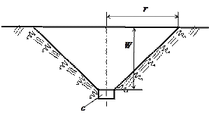 Рисунок 22 – Воронка выброса грунта Для расчёта зарядов выброса, исходной является воронка нормального выброса. Её объём Вес заряда