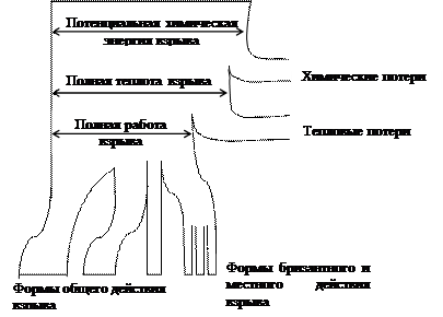 2.8.4 Схема баланса энергии при взрыве «Химические потери» происходят из-за возможности разброса непрореагировавших ВВ, неполного взрывчатого превращения или диссоциации. Полная работа проявляется большей частью в форме общего действия и в форме бризантного действия (рисунок 11).
