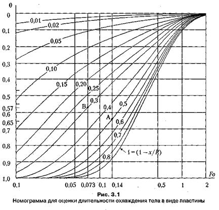 Для приближенной оценки длительности тела любой стереометрической формы используют номограммы (рис. 3.1). Семейство кривых в номограмме представлено для различных значений безразмерного комплекса