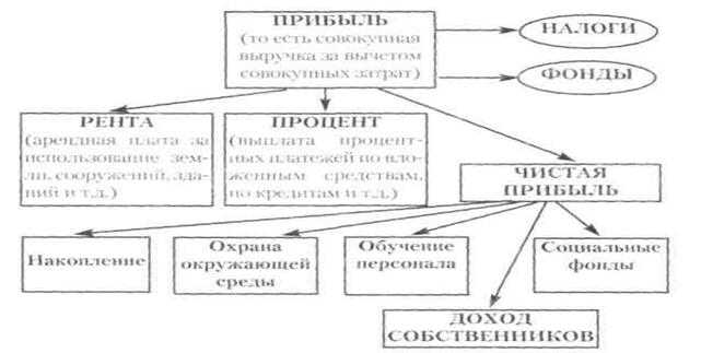 Итак, после вычитания из прибыли налоговых отчислений в бюджет страны, а также отчислений в благотворительные и иные фонды, после расчета с кредиторами, вкладчиками (инвесторами), а также арендодателями (владельцами земельных ресурсов, зданий, сооружений и т.д.), остается величина так называемой чистой прибыли. Чистая прибыль – это та часть экономической прибыли, которая остается после необходимых налоговых отчислений, выплат фондам, а также выплат владельцам факторов производства; (земля и капитал). Чистая прибыль распределяется на нужды фирмы: обучение персонала, охрана окружающей среды, накопление капитала для реализации будущих нужд, отчисления во внутренние социальные фонды. Кроме этого, в состав чистой прибыли входит величина дохода собственников фирмы.