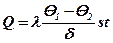 Рисунок 8 - Передача теплоты через плоскую стенку (теплота распространяется только в одном направлении)