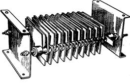 При максимальной рабочей температуре чугуна 400 °С номинальная мощность резисторов принимается из расчета на температуру 300 °С. Сопротивление чугунных резисторов в значительной степени зависит от температуры поэтому они применяются только как пусковые. Набор чугунных резисторов собирают в стандартные ящики с помощью стальных стержней, изолированных от чугуна миканитом (рис. 32). Если у резистора необходимо сделать отводы они делаются с помощью специальных зажимов, которые устанавливаются между соседними резисторами, соединенными последовательно. Общая мощность резисторов, установленных в одном ящике, не должна превосходить 4,5 кВт. При монтаже ящики резисторов монтируются друг на друге. При этом воздух, нагретый в нижних ящиках, омывает верхние, ухудшая охлаждение последних. Из этих соображений при вертикальном монтаже более трех ящиков между ними необходим зазор не менее 80-100 мм. Для ответственных электроприводов целесообразно реостат собирать из стандартных ящиков (без отводов внутри ящика). При повреждении резистора в ящике работоспособность схемы быстро восстанавливается путем замены неисправного ящика на новый. Поскольку температура воздуха вблизи резистора высока, токоподводящие провода и шины должны либо иметь достаточно теплостойкую изоляцию, либо вообще не иметь изоляции.