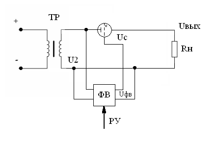 Тиратрон пропускает ток от «+» к «-» («зажигается») только, если на сетке будет положительный потенциал. Далее он ведет себя как вентиль. ФВ – фазовращатель, который позволяет менять фазу от 0 до π.